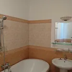 公寓的卧室有羽绒枕和床单. 浴室所提供的设备包括浴缸,吹风机和浴巾.